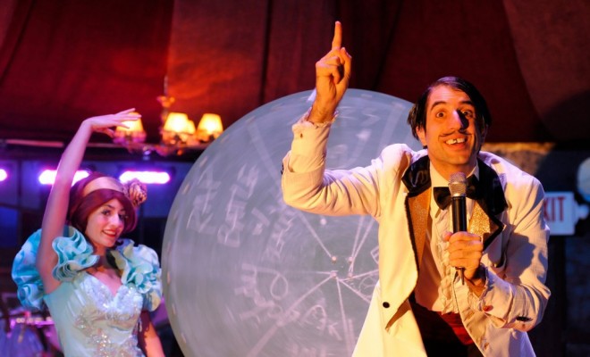 Strapped in – A stunning couple redefined on-stage chemistry with a serene aerial ballet routine. Though this act seemed a little offbeat for a theme like Absinthe, it was refreshing to see the Gazillionaire’s emotional side.