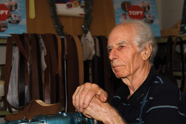 “My profession is the shoemaker. Start from nothing, prepare the leather and build the shoe. Years ago I would put a pair of shoes that I had made in the window and they would be sold that day. Now, no one buys handmade shoes like we used to make. In the beginning I made shoes here in my store but a few years ago there was a fire in my workshop and I lost all my tools. At my age, it doesn’t pay to replace everything, so I stopped making shoes.