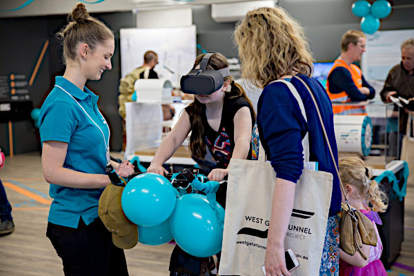 People can pop by the mobile info hub to drive through the future West Gate Tunnel on an interactive touch screen, have a virtual reality experience of the state-of-the art veloway, or watch the latest project videos.