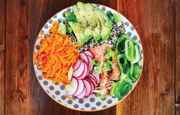 With that said, let me introduce you to the Poke bowl, pronounced ‘Po-kee’ a native Hawaiian dish which you can now find at many trendy cafes. Its traditionally made with raw fish but you can use any type of roasted veggies or cooked meat. This recipe is with smoked salmon which makes it even easier as there is no cooking required so it’s perfect for those hot summer days when you don’t want to be using your oven. What I love about this dish is it’s so versatile! When I’m making it for my kids I love to add broccoli and sweet potato or rice but you can literally use any veggies that they will eat ! It’s vibrant, it’s fresh, it’s healthy, it has the wow factor but yet it’s so easy to make!