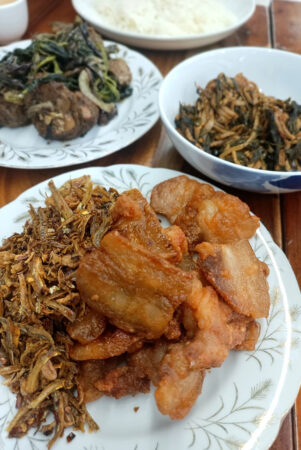 Burmese food – while familiar with its use of lemongrass, turmeric, lime and warm spices like coriander and cumin – depart somewhat from Thai or Vietnamese food, with less use of things like coconut and fresh seafood. This is mainly due to the country’s geography: mountainous and sharing borders with five countries on one side, with the Andaman Sea on the other. As such, ingredients like pulses, dried prawns/anchovies, fish, dried spices, pickled tea leaves and beef jerky are more prominent in their cuisine. This results in dishes that are warm, earthy and intensely flavourful.