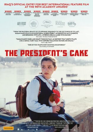 In 1990, nine-year-old Lamia lives with her grandmother Bibi and her beloved cockerel Hindi in Iraq’s Mesopotamian marshes. Harsh international sanctions have sent basic living costs skyrocketing; but even though his people are hungry, Iraqi president Saddam Hussein still demands that the nation celebrate his birthday, replete with a lavish cake. Assigned to bake such a cake for her local school – with severe consequences if she fails – Lamia teams up with her pal Saeed to undertake an odyssey of procuring flour, eggs and sugar in a place where they’re in desperately short supply.